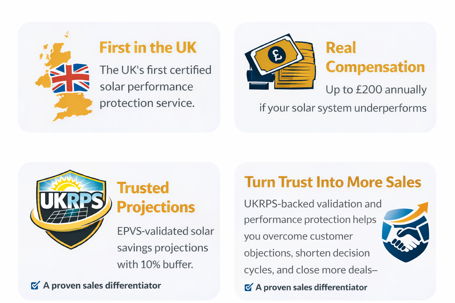 We empower both solar installers and homeowners across the UK by providing independent validation and robust performance protection. Our unique approach builds trust, reduces objections, and ensures that solar investments deliver on their promise.